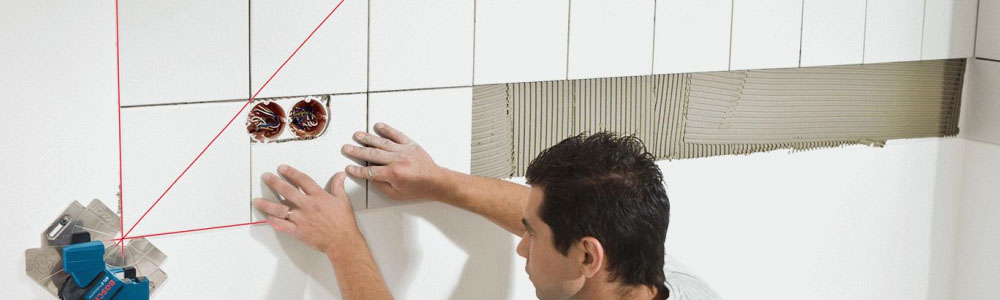 Укладка плитки на стены начинается с нижнего ряда. Для этого важно использовать уровень, чтобы начальная линия была ровной. Плитки срезаются по размеру, и наносится клей тонким слоем.