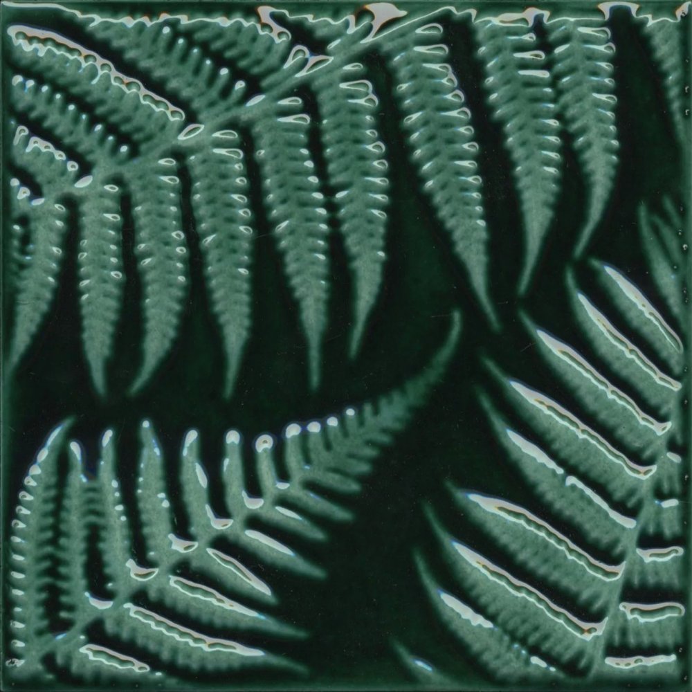 Декор Сантана 3 структуры Kerama Marazzi с рисунком листьев имеет размер 15x15 и глянцевую поверхность. Артикул SFD001. Цвет зеленый добавит освежающий акцент в интерьере. Темный оттенок придает изысканность. Объемная поверхность создает интересный визуальный эффект. Идеально подходит для украшения стен в ванной комнате, кухне или гостиной, придавая помещению уют и элегантность.